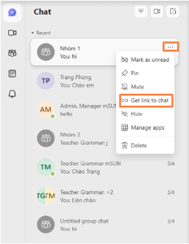 Bước 2: Bẩm biểu tượng …Chọn get link to chat