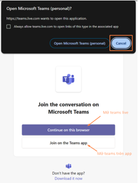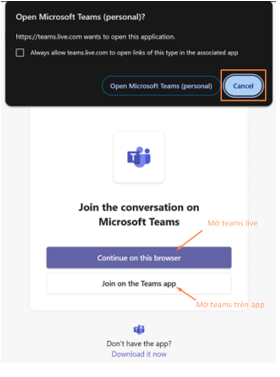 +Bước 4.3: Chọn mở trên live hoặc mở trên app