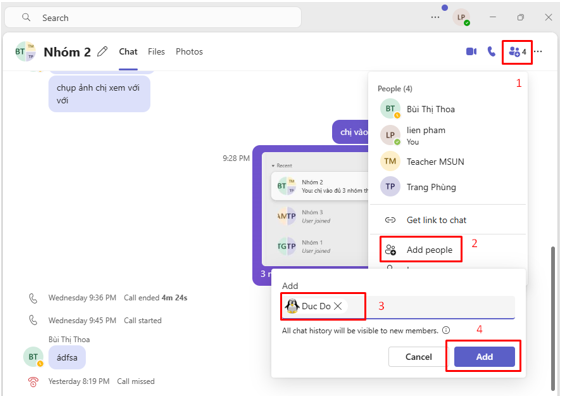 Bước 1: Bấm vào nhóm cần thêm người dùng