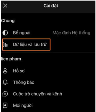 Bước 3: Chọn Dữ liệu và lưu trữ.