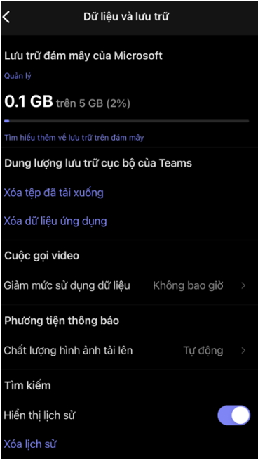 Để giải phóng bố nhớ trên ứng dụng teams, bạn thực hiện thao tác