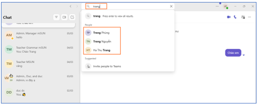 Bước 1: Vào phần chat, tìm kiếm theo tên người dùng